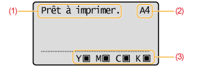 Affiche le menu [Sélect. charg.]. Indique l'alimentation papier utilisée pour l'impression (cassette à papier ou bac multifonctions) et la taille du papier. Cette touche est signalée par [
