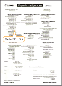 Après l'installation d'une carte SD, imprimez la page de configuration pour vérifier si ce module est correctement installé.