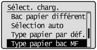 Comme la valeur par défaut du [Type de papier] du pilote imprimante est [Paramètre par défaut de l'impr.], il n'est normalement pas nécessaire de modifier les paramètres du pilote imprimante.