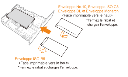 Evitez d'imprimer sur la face arrière des enveloppes (celle où se trouve la partie collante).