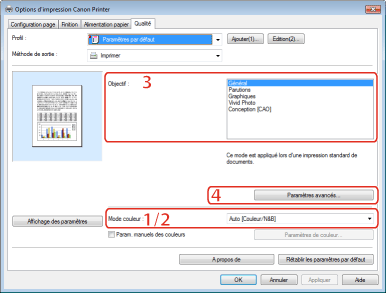 Permet d'imprimer des documents couleur en noir et blanc (reportez-vous à "Affichage de l'aide en ligne").