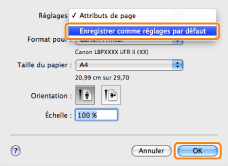 Sélectionnez [Enregistrer comme réglages par défaut] sous [Réglages] → cliquez sur [OK].