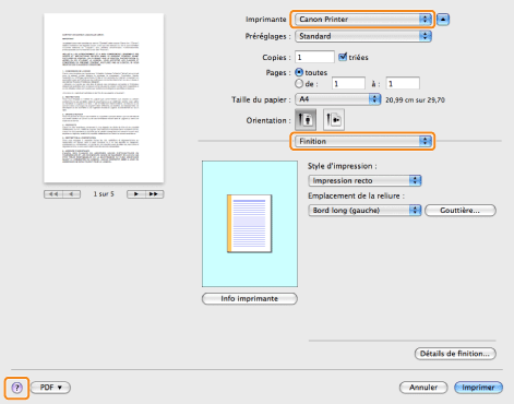 ] dans la boîte de dialogue [Configuration page] ou la boîte de dialogue [Imprimer].