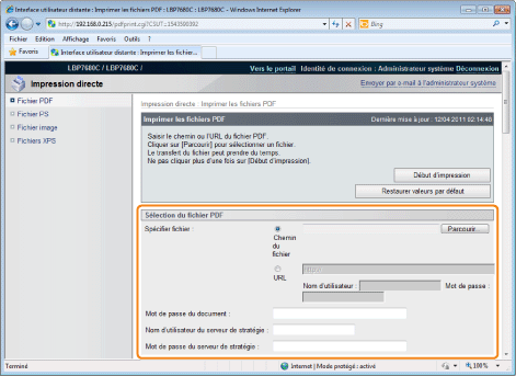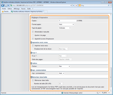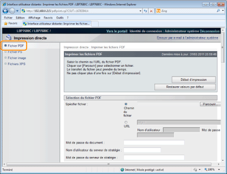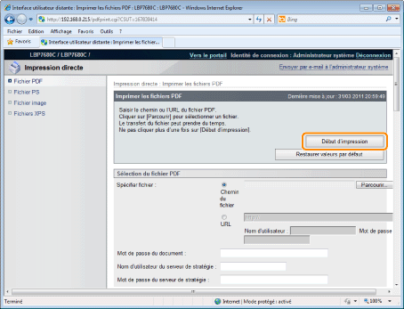 Lorsque vous spécifiez une URL et que vous imprimez, vous ne pouvez pas effectuer la tâche d'impression suivante tant que le PDF n'est pas entièrement téléchargé ou que la connexion au serveur Web n'est pas coupée.