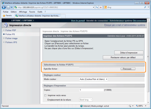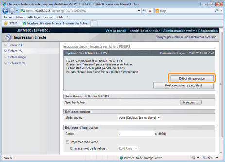 Ne continuez pas à cliquer sur [Début d'impression] pendant le transfert du fichier. Il faut parfois assez longtemps pour transférer un fichier et, si vous cliquez pendant le transfert, cela peut provoquer une erreur du fichier et empêcher son transfert.