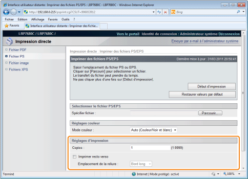 Si vous utilisez une imprimante LBP7660CdnPour utiliser l'impression directe avec des fichiers PS/EPS, vous devez installer le module PS ROM en option.