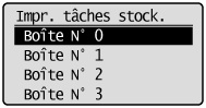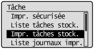 Sélectionnez [Impr. tâches stock.] à l'aide de [] et de [  ], puis appuyez sur [OK].