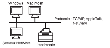 Par exemple, si vous utilisez Windows et Macintosh sur le même réseau, suivez à la fois la procédure "Exemple d'un réseau Windows" et la procédure "Exemple d'un réseau Macintosh".