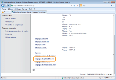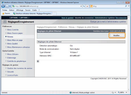 Modification des paramètres avec un navigateur Web (Interf dist)