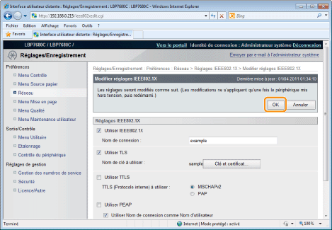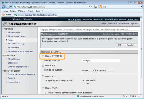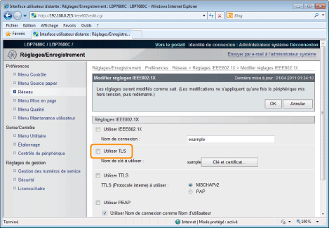 Définissez les informations d'authentification pour l'utilisation de TLS avec la méthode d'authentification IEEE802.1X.