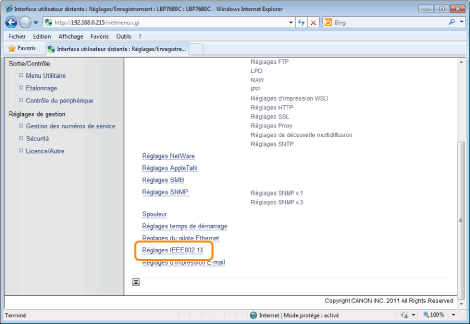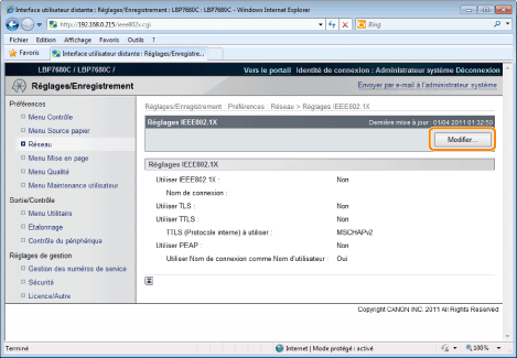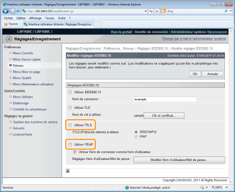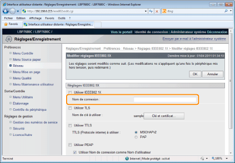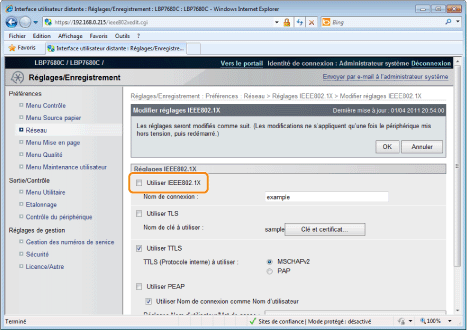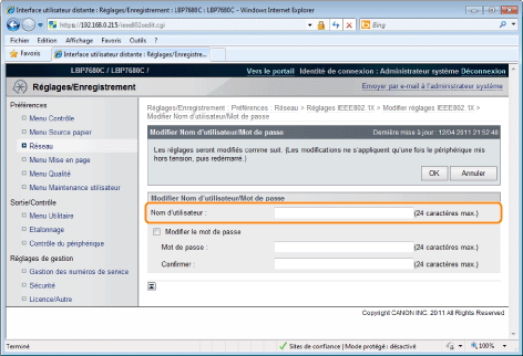 Pour définir un nom et un mot de passe utilisateurVous devez configurer à l'avance la fonction de communication chiffrée SSL.
