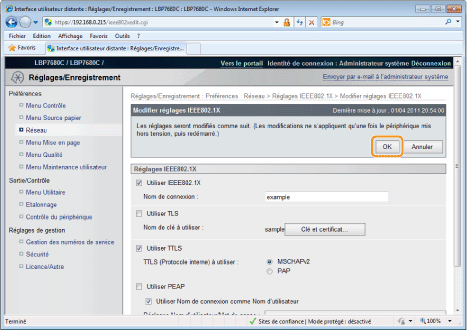 Si un message s'afficheUn message s'affiche si les paramètres sont incorrects. Reportez-vous aux étapes 6 à 10 et vérifiez les paramètres.