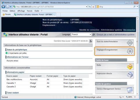 Après une réinitialisation matérielle ou un redémarrage de l'imprimante, les paramètres sont effectifs.