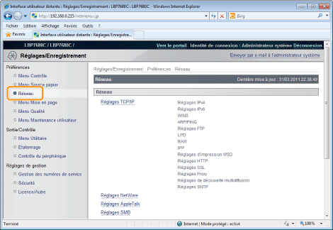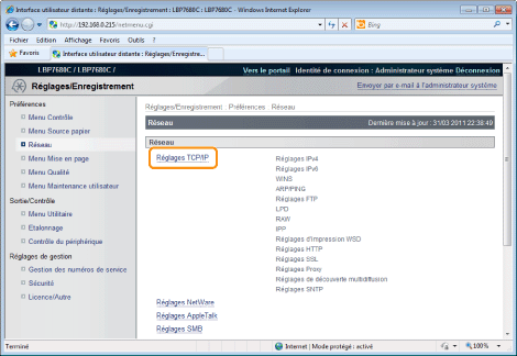 Le cryptage IPSec (Security Architecture for Internet Protocol, architecture sécurisée pour le protocole IP) n'est pas pris en charge pour l'imprimante LBP7660Cdn.