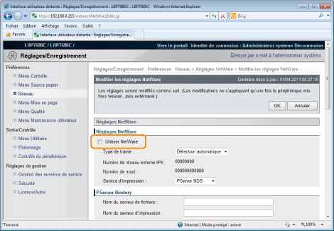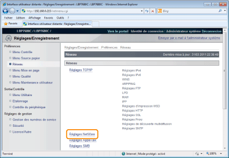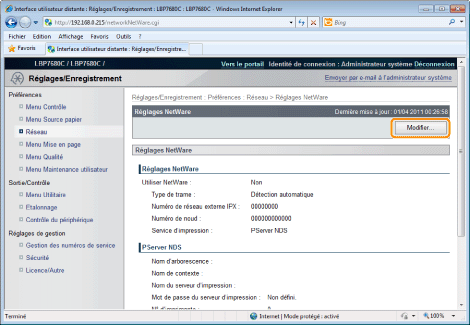 Dans Interf dist, vous pouvez définir les paramètres en accédant à l'imprimante depuis un navigateur Web sur un réseau.
