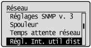 : Paramètres), sélectionnez [Réseau ] à l'aide de [