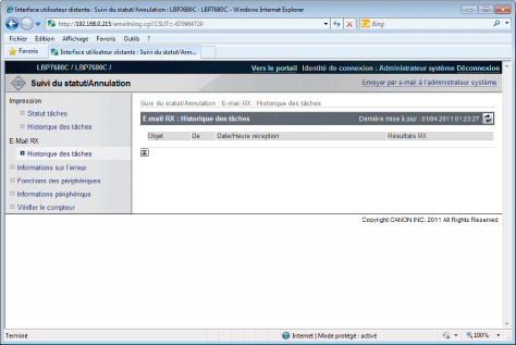 Affichez l'historique des travauxLa liste de l'historique des courriers électroniques reçus s'affiche.