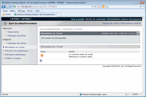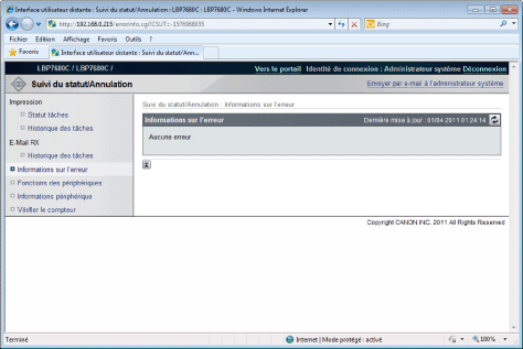 Bouton Mettre à jourPermet d'actualiser la page [Informations sur l'erreur].