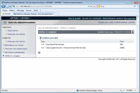 [Compteur principal]Le nombre de pages imprimées pour chaque compteur s'affiche.