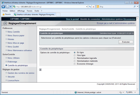 Bouton Mettre à jourPermet d'actualiser la page [Informations périphérique].