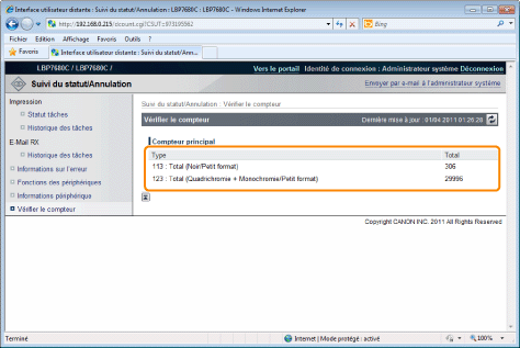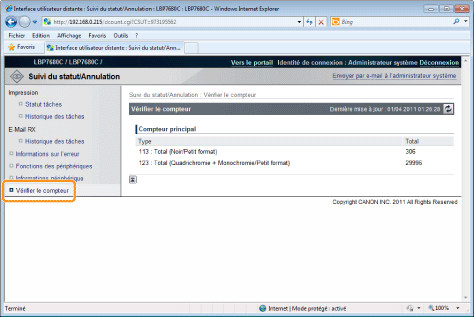 Sélectionnez [Vérifier le compteur] dans le menu [Suivi du statut/Annulation].
