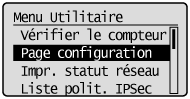 Sélectionnez [Page configuration] ou [Impr. statut réseau] à l'aide de [