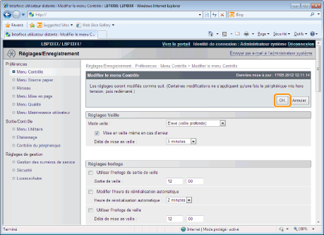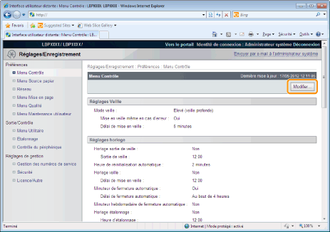 Si le paramètre défini pour cette option est inférieur au paramètre par défaut, la durée de vie des cartouches de toner peut être réduite (le paramètre par défaut est de 4 heures).