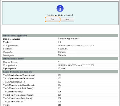 Vérifiez les informations affichées sur la page de confirmation d'installation → Cliquez [Oui].