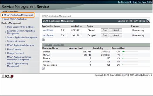 A partir de la page d'accueil de SMS, cliquez sur [MEAP Application Management].