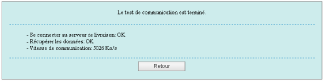 Si le test de communication est terminé, l'écran du résultat du test de communication s'affiche.
