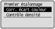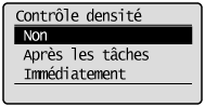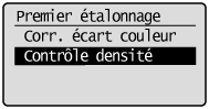 Le contrôle de densité est ajusté immédiatement après la mise sous tension de l'imprimante. Si le contrôle de densité est exécuté aussitôt après la mise sous tension de l'imprimante, un certain temps est nécessaire avant que l'impression ne soit possible.
