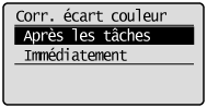 Le décalage des couleurs d'impression est ajusté immédiatement après la mise sous tension de l'imprimante. Si l'ajustement du décalage des couleurs est exécuté aussitôt après la mise sous tension de l'imprimante, un certain temps est nécessaire avant que l'impression ne soit possible.