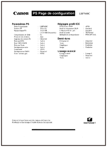 Les listes suivantes sont des exemples. Leur contenu peut être en partie différent de celui des listes imprimées par votre imprimante.
