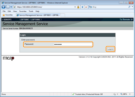 Saisissez le mot de passe correct et cliquez sur [Log in].