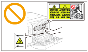 Quando si rimuove la carta inceppata oppure quando si ispeziona la parte interna della stampante, non esporsi per un periodo di tempo prolungato al calore emesso dall'unità di fissaggio o dalle parti circostanti. Se non ci si attiene a questa avvertenza ci si potrebbe bruciare, anche senza toccare direttamente l'unità di fissaggio o le parti circostanti.