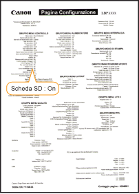 Dopo aver installato una scheda SD, stampare la pagina di configurazione per verificare che il modulo sia installato correttamente.