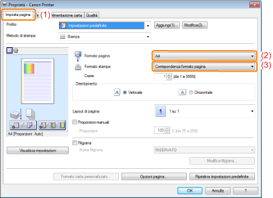 Se le impostazioni di [Formato pagina] e [Formato stampa] sono diverseLa stampa viene ridotta o ingrandita automaticamente per adattarsi alla pagina.