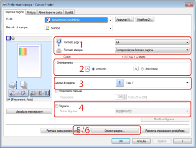 Per informazioni su come visualizzare la schermata del driver della stampante, vedere "Stampa con il driver della stampante" o "Configurazione anticipata delle impostazioni di stampa".