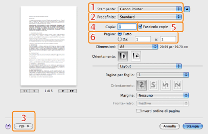 Seleziona la stampante da utilizzare tra quelle aggiunte in precedenza nel riquadro [Stampa] della finestra di dialogo [Stampa e Fax] in [Preferenze di Sistema].