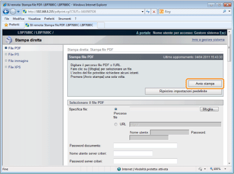Quando si specifica un URL e si procede con la stampa, non è possibile eseguire un lavoro di stampa successivo finché non è terminato lo scaricamento del PDF o non è stata completata la connessione con il server Web.