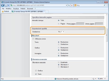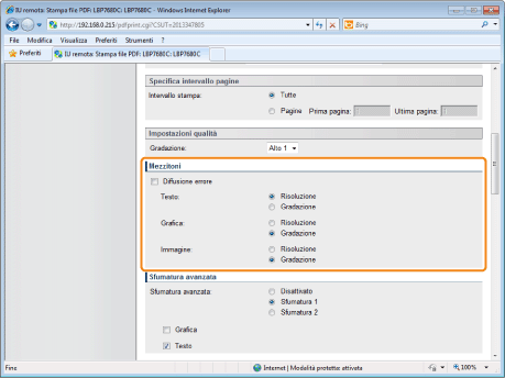[Le impostazioni [Grafica] e [Testo] sulla console della stampante sono appropriate solo quando l'opzione [Rifinitura avanzata] nel driver della stampante è impostata su [Impost. predefinite stampante].