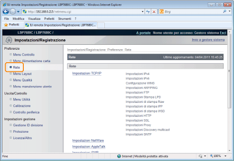 : Utilità) per visualizzare il menu Utility.