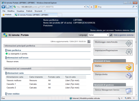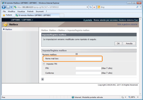 Se per la box è stata specificata una password, immettere la password e fare clic su [OK].