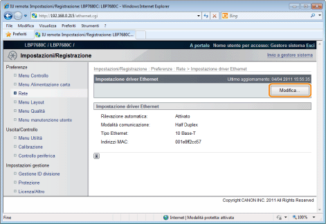Utilizzando [Tipo Ethernet], selezionare il tipo di Ethernet corrispondente all'ambiente di rete in uso.