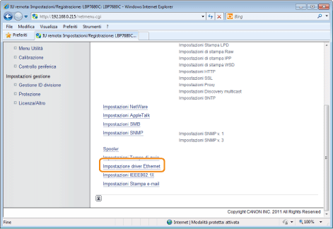 Controllo della schermata Driver Ethernet di rete da una IU Remota