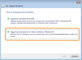 Selezionare [Stampante di rete o stampante collegata a un altro computer].