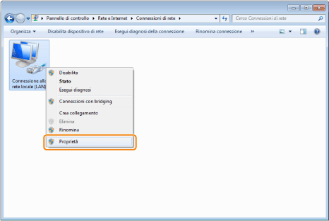 Visualizzare la finestra di dialogo [Proprietà - Connessione alla rete locale (LAN)].