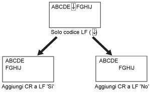 Consente di selezionare se accodare un carattere CR (Carriage Return) quando viene ricevuto un carattere LF (Line Feed).