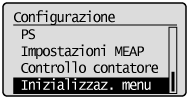 Se viene visualizzato il messaggio <Inizializzazione non riuscita.>Se viene visualizzato il messaggio <Inizializzazione non riuscita.> quando si esegue l'inizializzazione del menu [Configurazione], il menu [Configurazione] non verrà inizializzato.