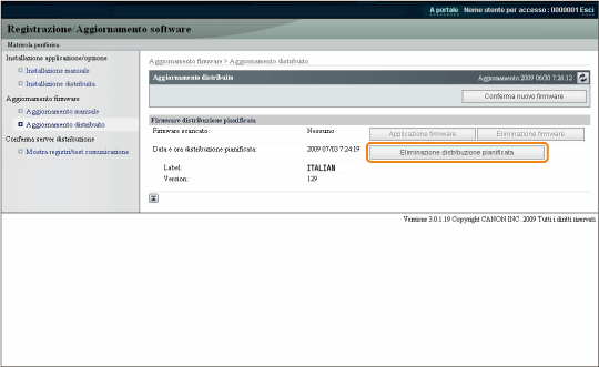 Il nuovo firmware viene scaricato. ![]() Quando il pianificazione distribuzione è impostato a [Distribuzione alla data e all'ora specificate]